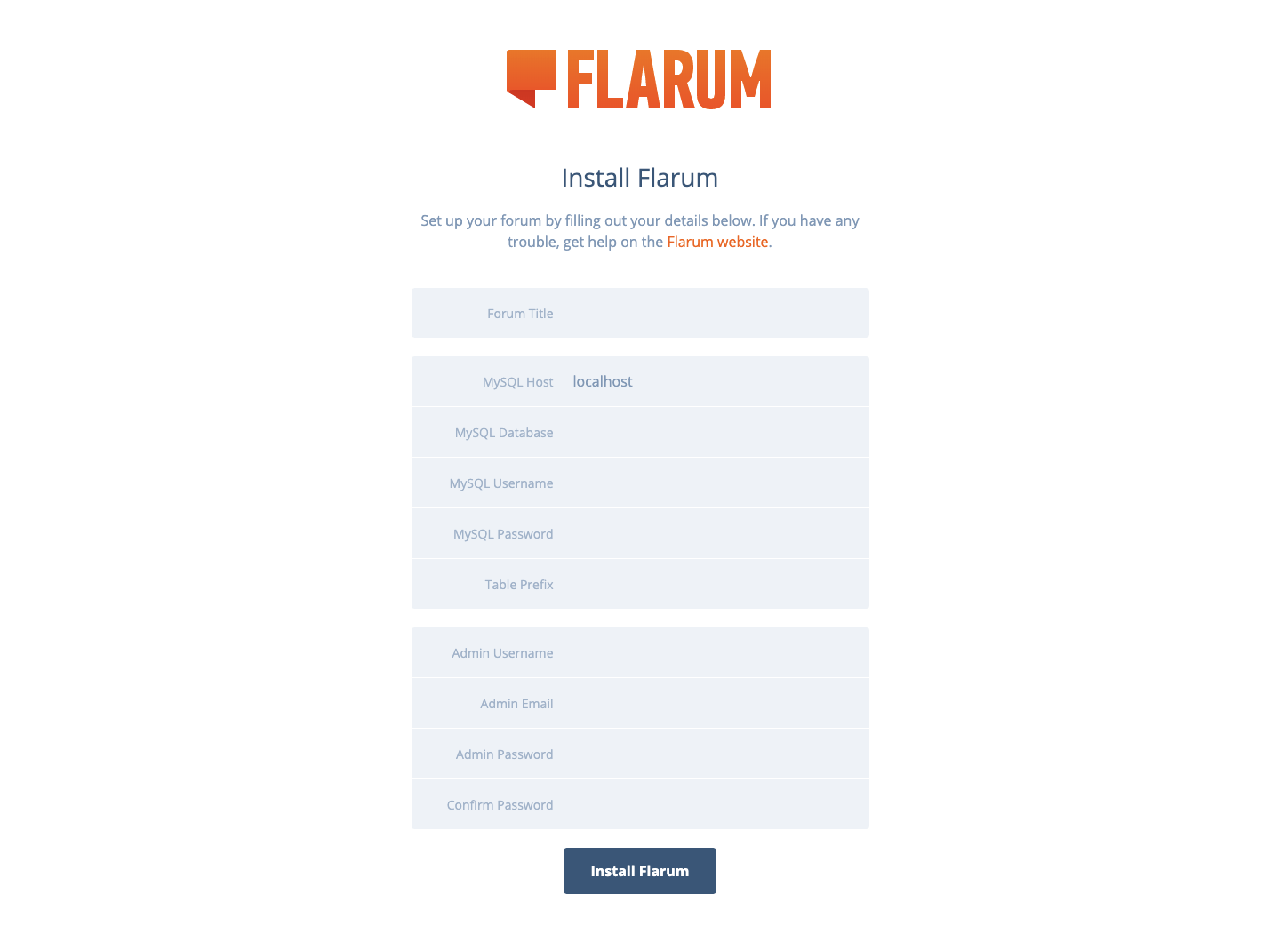 The Flarum forum installation page will open that will look like this: