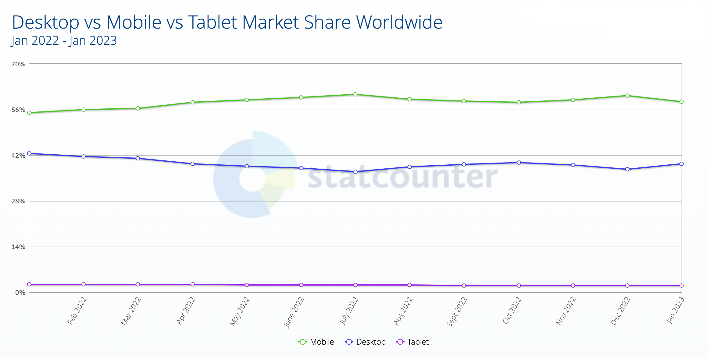 As you can see in the chart above, more than 56% of visits worldwide come from mobile devices, and the number is only growing. Mobile devices are portable and can be carried anywhere, so due to this convenience, this percentage will continue to grow.